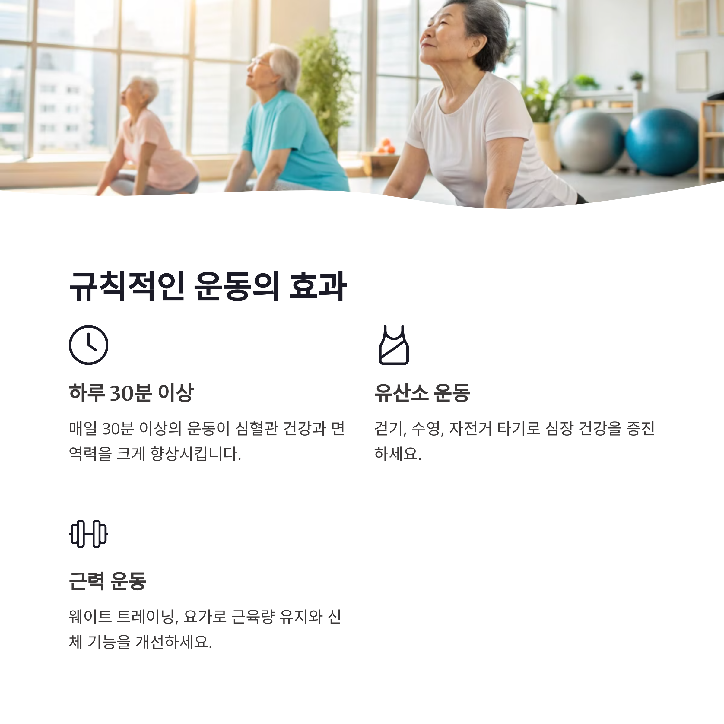 | 규칙적인 운동 | 매일 최소 30분 이상 신체 활동이 필요합니다. |
